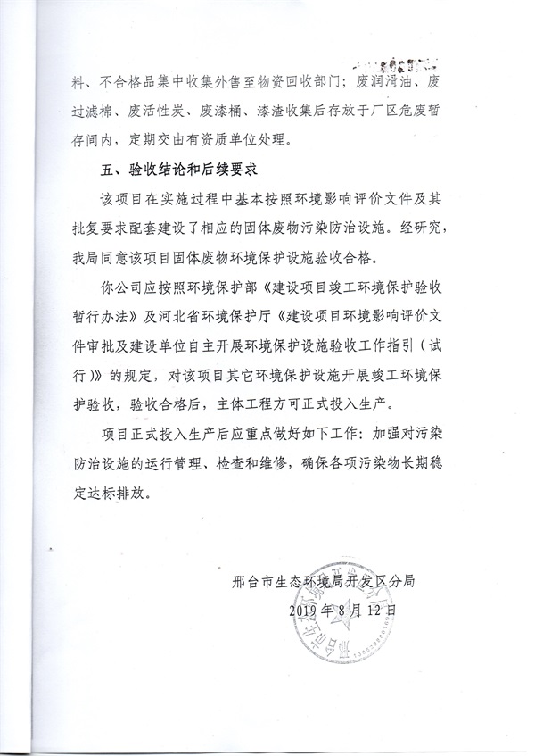 > 新闻动态 > 关于邢台德港电子有限公司竣工环境保护验收合格的函